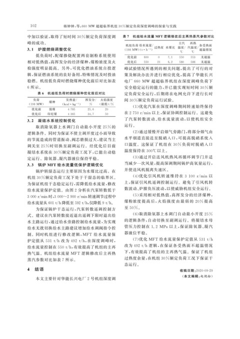 1 0 2 韩钟钟, 等: 660 MW 超超临界机组 30% 额定负荷深度调峰的探索与实践
