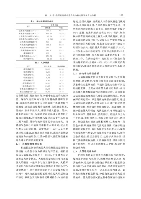 流温度, 这就造成煤粉着火困难、 火焰稳定性差、 烧调整优化, 维持锅炉参数的稳定。通过调整, 保