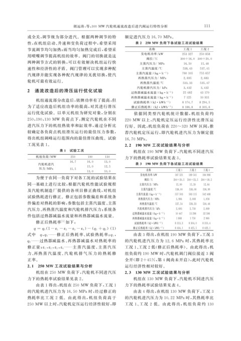 250MW 以上时, 汽轮机定压运行经济性较好, 即 工况 1 、 工 况 2 低。由 此 得 出, 机 组 负 荷 约 130