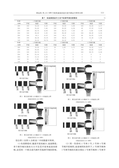 表 7 机组典型运行工况下的调节阀压损情况 %