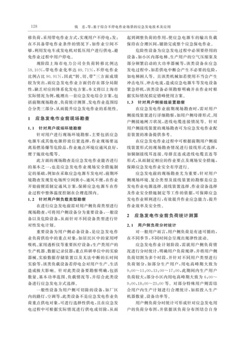 1 2 8 钱 忠, 等: 基于综合不停电作业场景的应急发电技术及应用