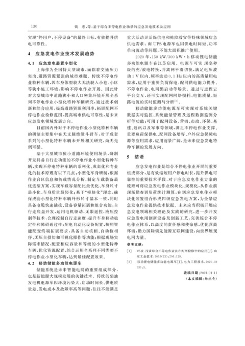 1 3 0 钱 忠, 等: 基于综合不停电作业场景的应急发电技术及应用