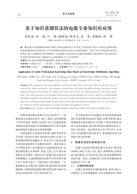 关键词: 电力系统; 电缆; 知识蒸馏算法; 电缆专业知识库