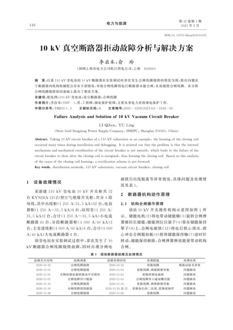 关键词: 配电网; 110kV 变电站; 真空断路器; 合闸线圈