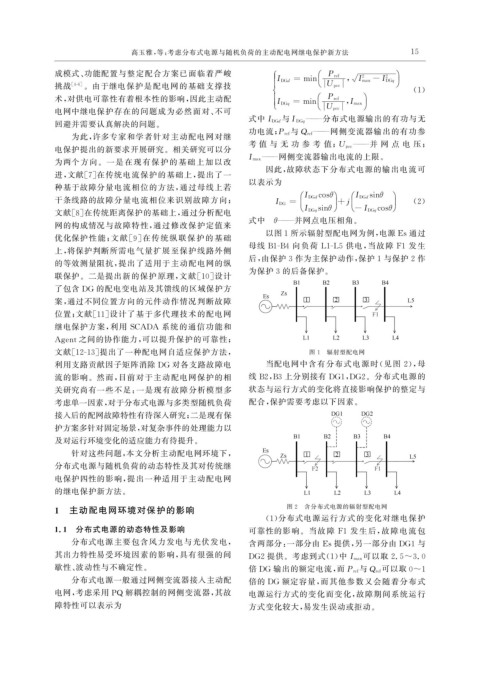 流的影响。然而, 目前对于主动配电网保护的相 线 B2 , B3 上分别接有 DG1 , DG2 。分布式电源的