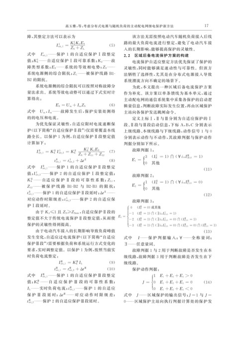 障, 其整定方法可以表示为 该方法无需按照电动汽车随机负荷接入后线