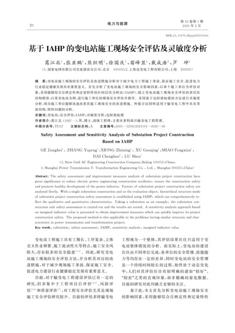 站施工现场的安全评估方法, 并分析其对应的改 力等均存在一定的差异, 同时变电站的安全管理