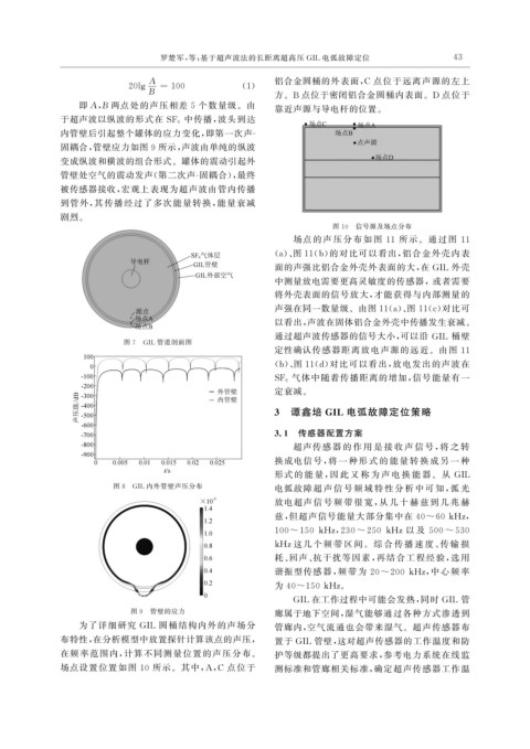 图 8 GIL 内外管壁声压分布 电弧故障 超 声 信 号 频 域 特 性 分 析 中 可 知, 弧 光