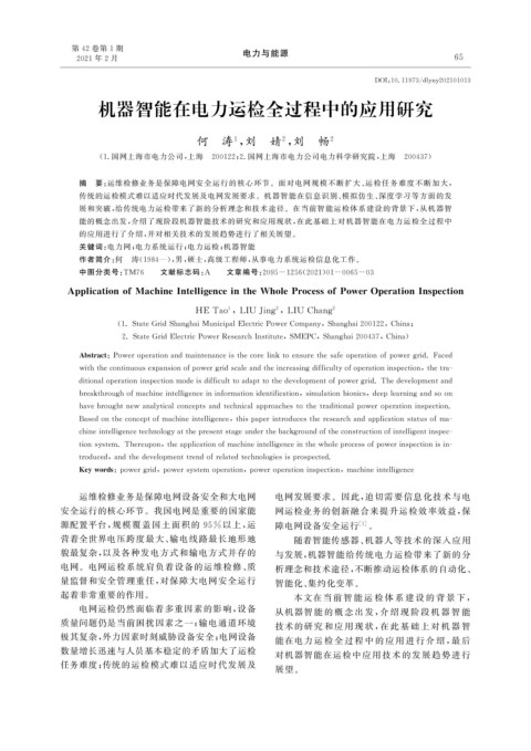 关键词: 电力网; 电力系统运行; 电力运检; 机器智能