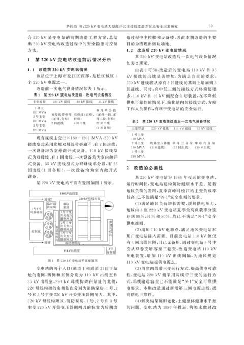 表 1 某 220kV 变电站改造前一次电气设备情况 多, 110kV 和 35kV 侧配合自切装置, 在不降低