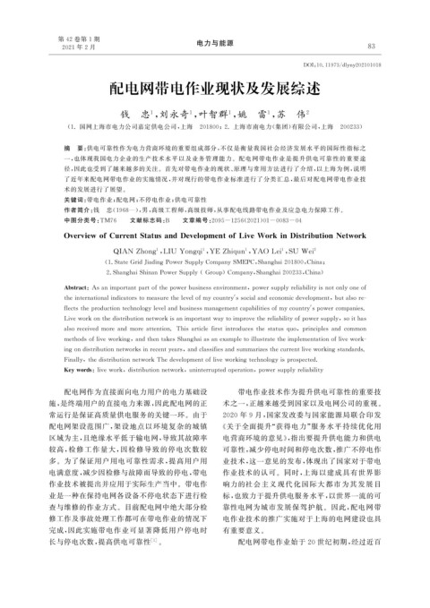 电满意度, 减少因检修与故障而导致的停电, 带电 作业技术的认可。同时, 上海以建成具有世界影