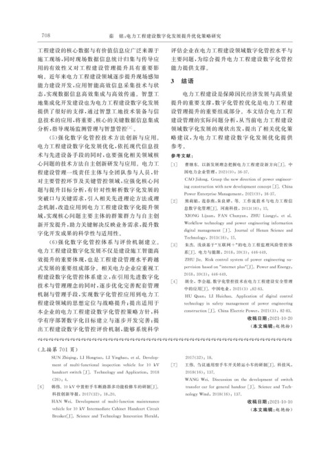 7 0 8 茹 铭: 电力工程建设数字化发展提升优化策略研究