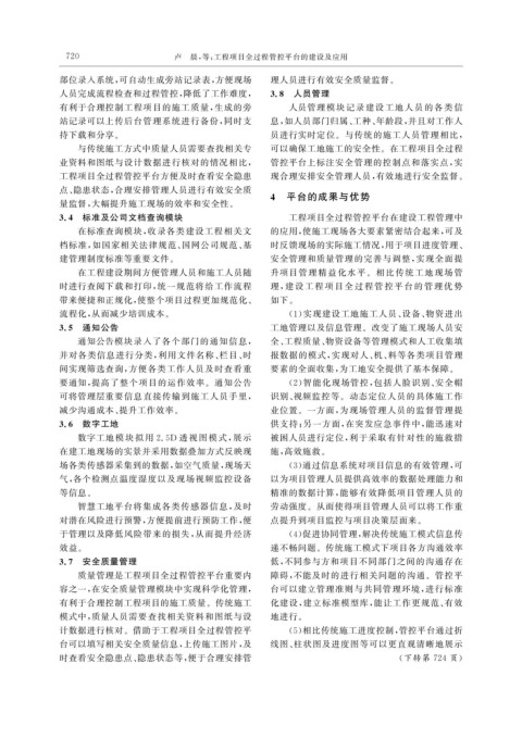 7 2 0 卢 晨, 等: 工程项目全过程管控平台的建设及应用