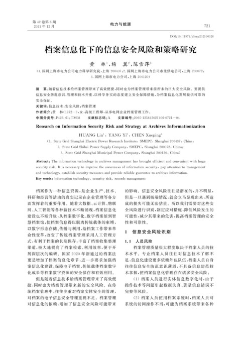 作者简介: 黄 林( 1972 —), 女, 高级工程师, 从事电网企业档案管理工作。