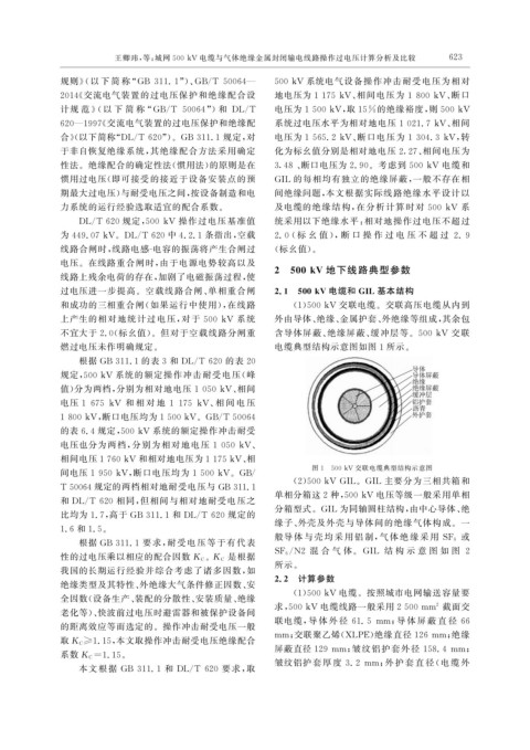 力系统的运行经验选取适宜的配合系数。 及电缆的绝缘结构, 在分析计算时对 500kV 系