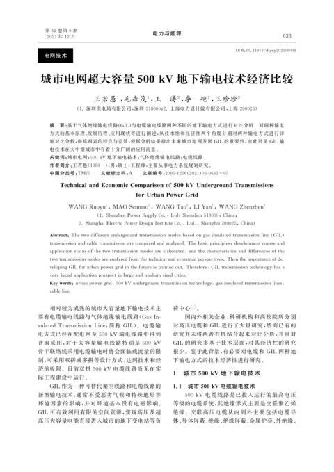 TechnicalandEconomicCom p arisonof500kVUnder g roundTransmissions