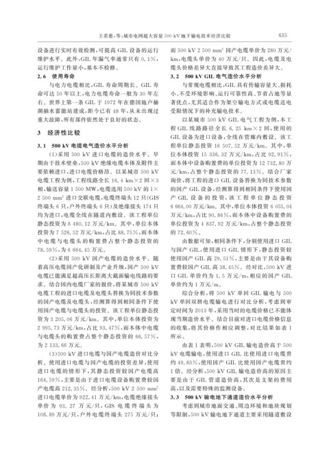 进口 电 缆 的 情 形 下, 其 静 态 投 资 较 国 产 电 缆 高 1 倍。经分析, 500kV GIL 输电造价高的原因主
