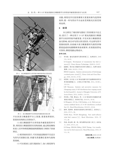 ( 1 ) 真空断路器平台异形防外破装置简单可 [ 6 ] 李成, 张志辉, 韩一鸣 . 驱鸟器带电安装工具[ J ] . 农村电