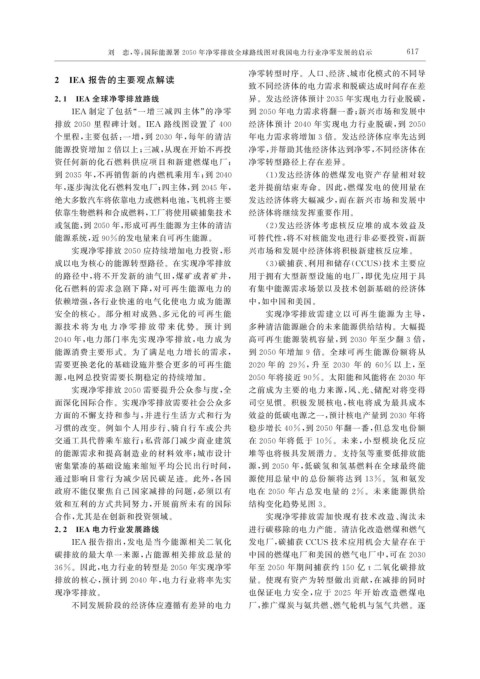 刘 恋, 等: 国际能源署 2050 年净零排放全球路线图对我国电力行业净零发展的启示 6 7