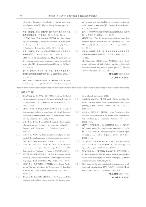 [ 4 ] 黄盼,潘冠旭,程佳 . 浅析电厂循环水排污水回用的深度 [ 7 ] 袁方 .1000MW 机组循环水补水石灰处理系统优化及调