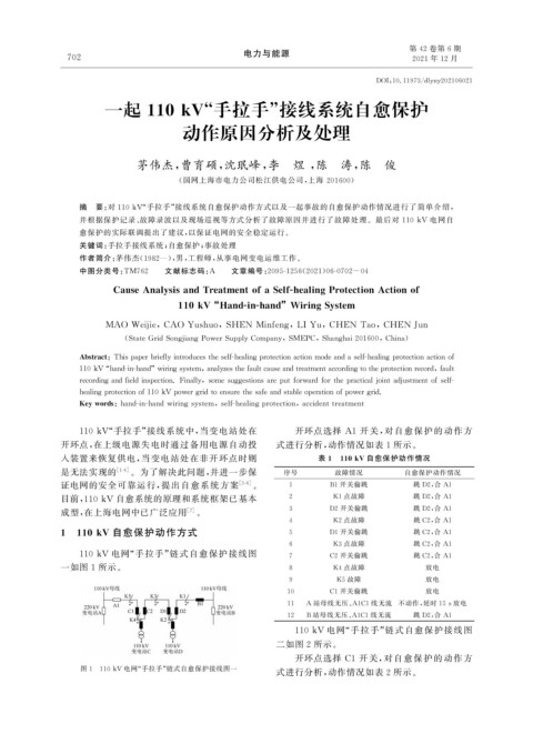 110kV “ hand-in-hand ” wirin g s y stem , anal y zesthefaultcauseandtreatmentaccordin g tothe p rotectionrecord , fault
