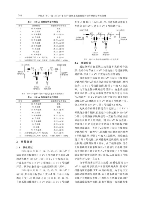 7 0 4 茅伟杰, 等: 一起 110kV “ 手拉手” 接线系统自愈保护动作原因分析及处理