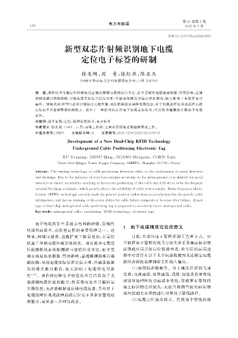 定位也不具备预警或检测能力。提出了一种新型双芯片地下电缆定位标签, 可以较为精确地实现地下电缆