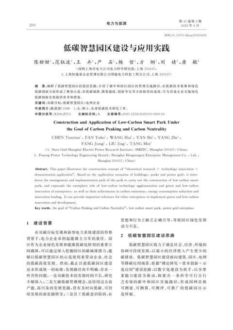 的低碳高效发展。然而, 截止目前低碳园区建设 等降碳应用场景, 依据“ 理论研究 + 技术创新 + 示