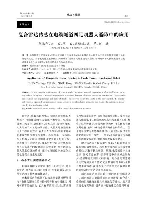 关键词: 复合雷达传感; 电缆隧道; 巡检自动化