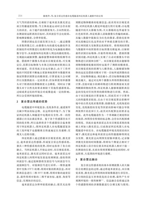 2 1 4 陈艳羚, 等: 复合雷达传感在电缆隧道四足机器人避障中的应用