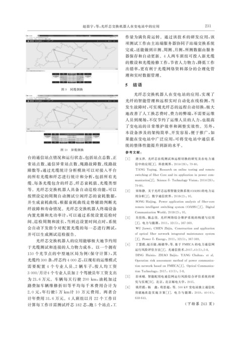 等。光纤芯交换机器人具备自动巡检功能, 可以 [ 2 ] 宋海静 . 关于光纤芯远程智能交换系统( OASS ) 的电力运