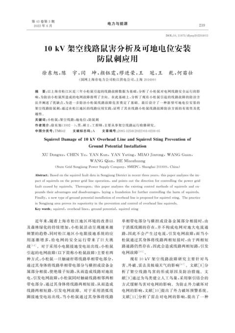 关键词: 小松鼠; 架空线路; 地电位; 防鼠刺