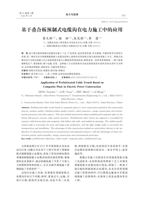Abstract : Prefabricatedcabletrenchbasedoncom p osite p lateisanewconstructionmethodintheconstruction
