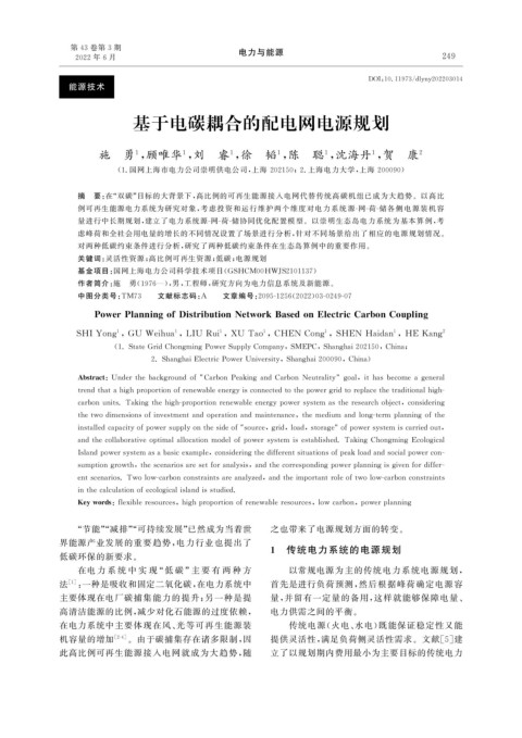 ( 1.StateGridChon g min gPowerSu pp l yCom p an y , SMEPC , Shan g hai202150 , China ;
