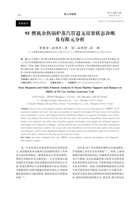 关键词: 燃气 - 蒸汽联合循环机组; 余热锅炉; 蒸汽管道; 支吊架; 状态诊断; 有限元分析
