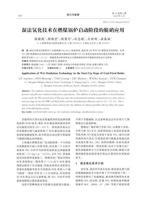 Ke ywords : coal-firedboilerstart-u p , wetoxidationtechnolo gy , desulfurizations y stem