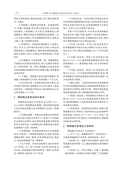 2 7 6 朱茂理, 等: 预制舱式变电站的设计及工艺技术