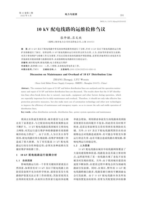 nanceandre p airof10kVandbelowdistributionlinesarediscussed.Theresultsshowthatthe10kVdistribu-