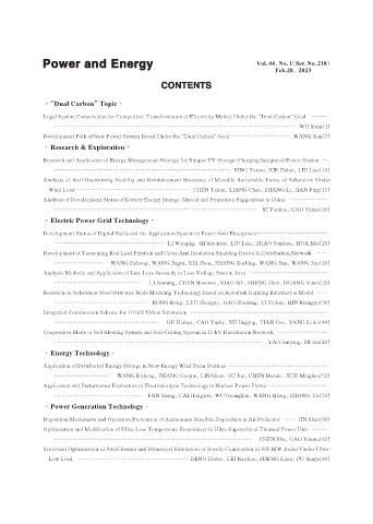 Development Path of New Power System Based Under the “Dual Carbon”Goal …………………………… WANG Xun(7)