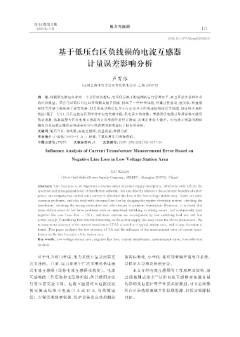 Key words:low voltage station area,negative line loss,current transformer,measurement error,loss reduction
