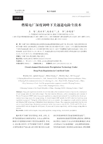 峰下的除尘效率、电耗和经济性,发现电除尘器具有较大的节能空间,提出了适用于 19% 超低负荷深度调峰