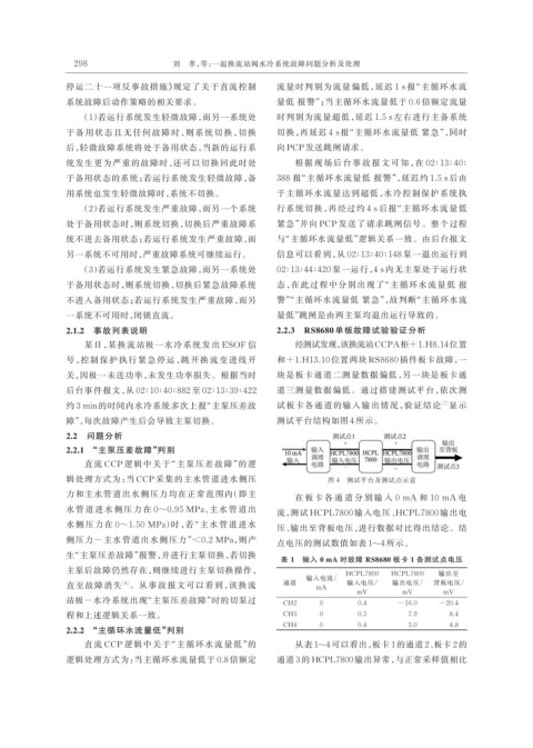 于备用状态时,则系统切换,切换后紧急故障系统 态,在此过程中分别出现了“主循环水流量低 报