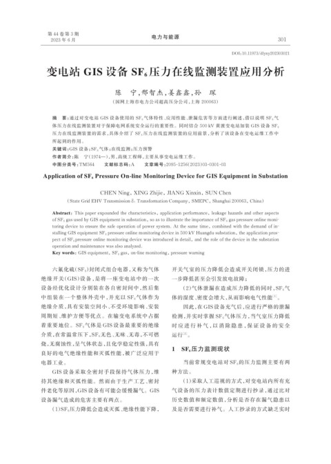 关键词:GIS 设备;SF 6 气体;在线监测;压力预警
