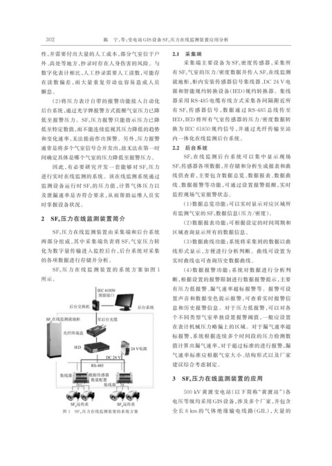 302 陈 宁,等:变电站 GIS 设备 SF 6 压力在线监测装置应用分析