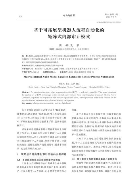 关键词:机器人流程自动化;矩阵式;数字化审计
