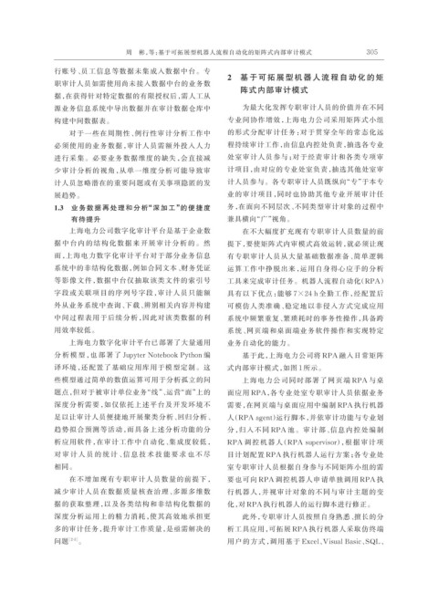 周 彬,等:基于可拓展型机器人流程自动化的矩阵式内部审计模式 305