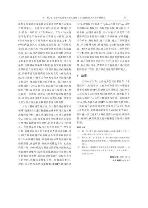 (3)工程项目管理方面,在工程费用结算审计 上海电力公司将根据使用效果对 RPA 执行机器