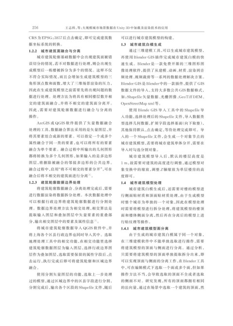 1.2.2 城市建筑面融合与分离 通过三维建模工具,可以生成城市建筑模型,