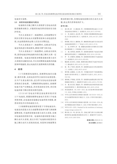 统,向远程值班的运维人员发出告警信息。 [3] 钟国彬,周方方,魏增福,等 . 磷酸铁锂电池作为变电站用