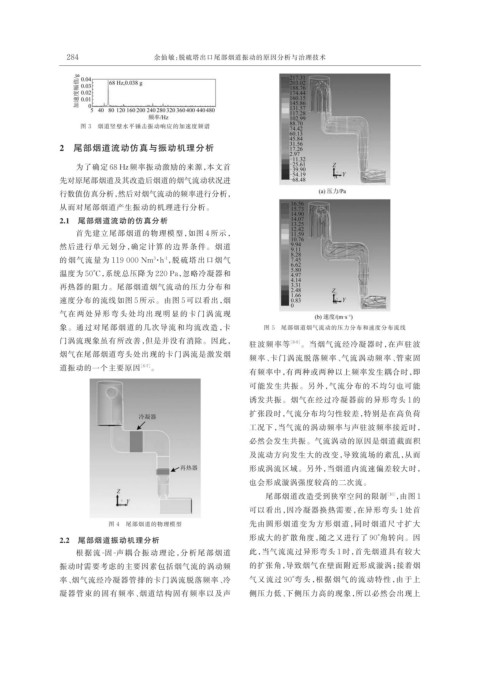 根据流-固-声耦合振动理论,分析尾部烟道 此,当气流流过异形弯头 1 时,首先烟道具有较大